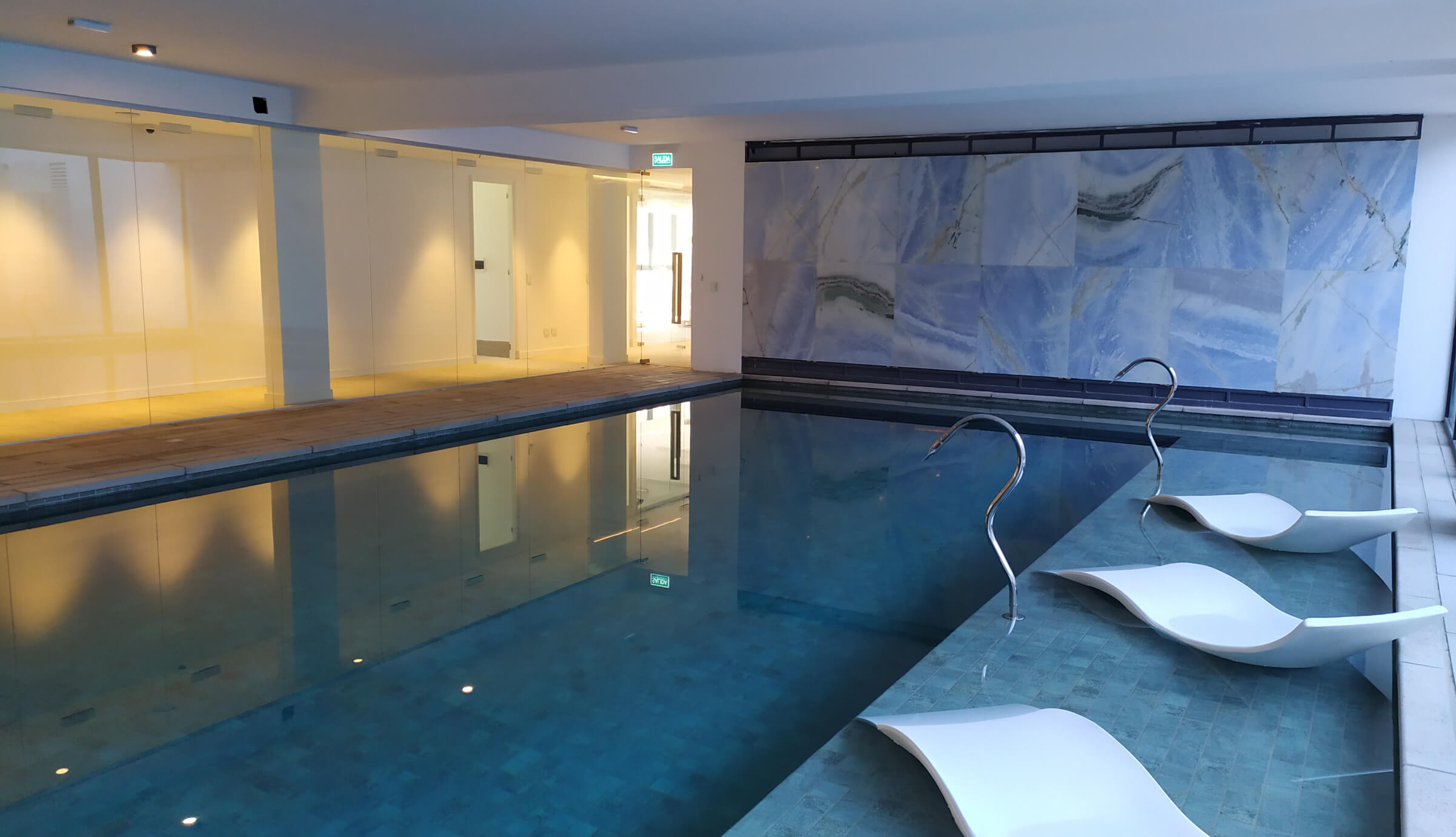 Se pensó en el complemento ideal para sumar a los amenities del complejo Greenpark, una piscina de líneas simples, pero con detalles que realzan un diseño de vanguardia.